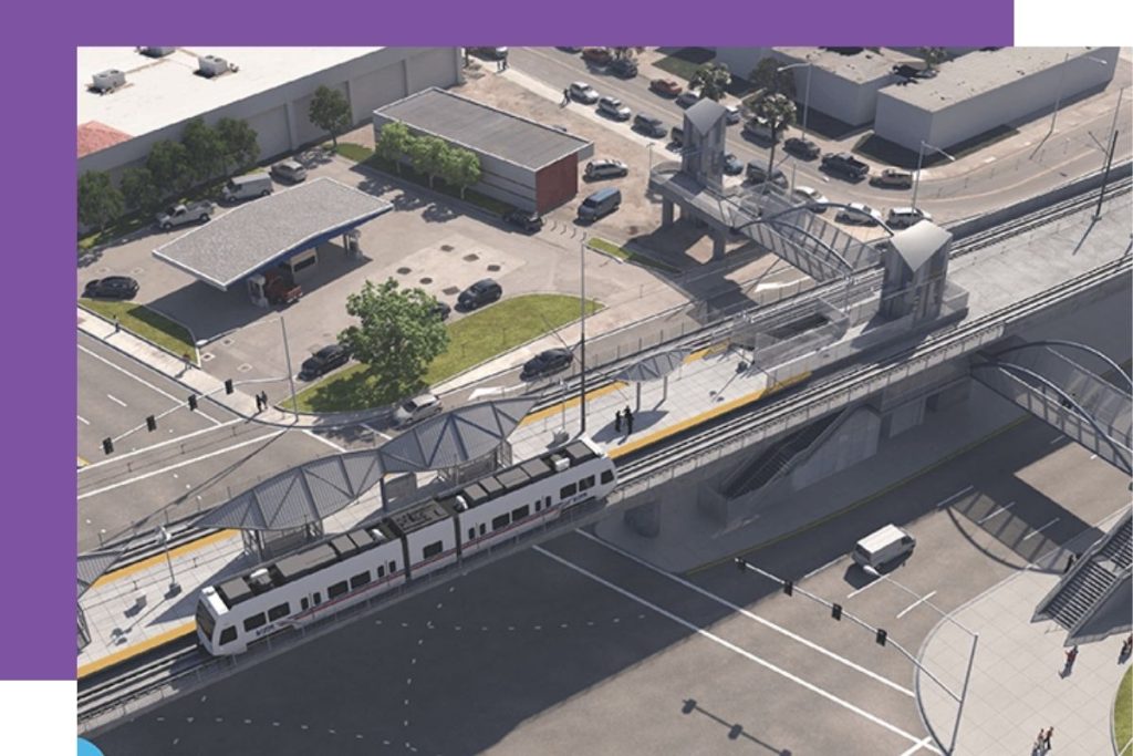 The project extends light rail from the existing Alum Rock Light Rail Station to the Eastridge Transit Center with an elevated guideway primarily in the center of Capitol Expressway. The Eastridge extension will include an elevated light rail station at Story Road, and an at-grade station located at the Eastridge Transit Center. When this project is complete, travelers will board the light rail at the Eastridge Station and connect directly with the BART Milpitas Station.